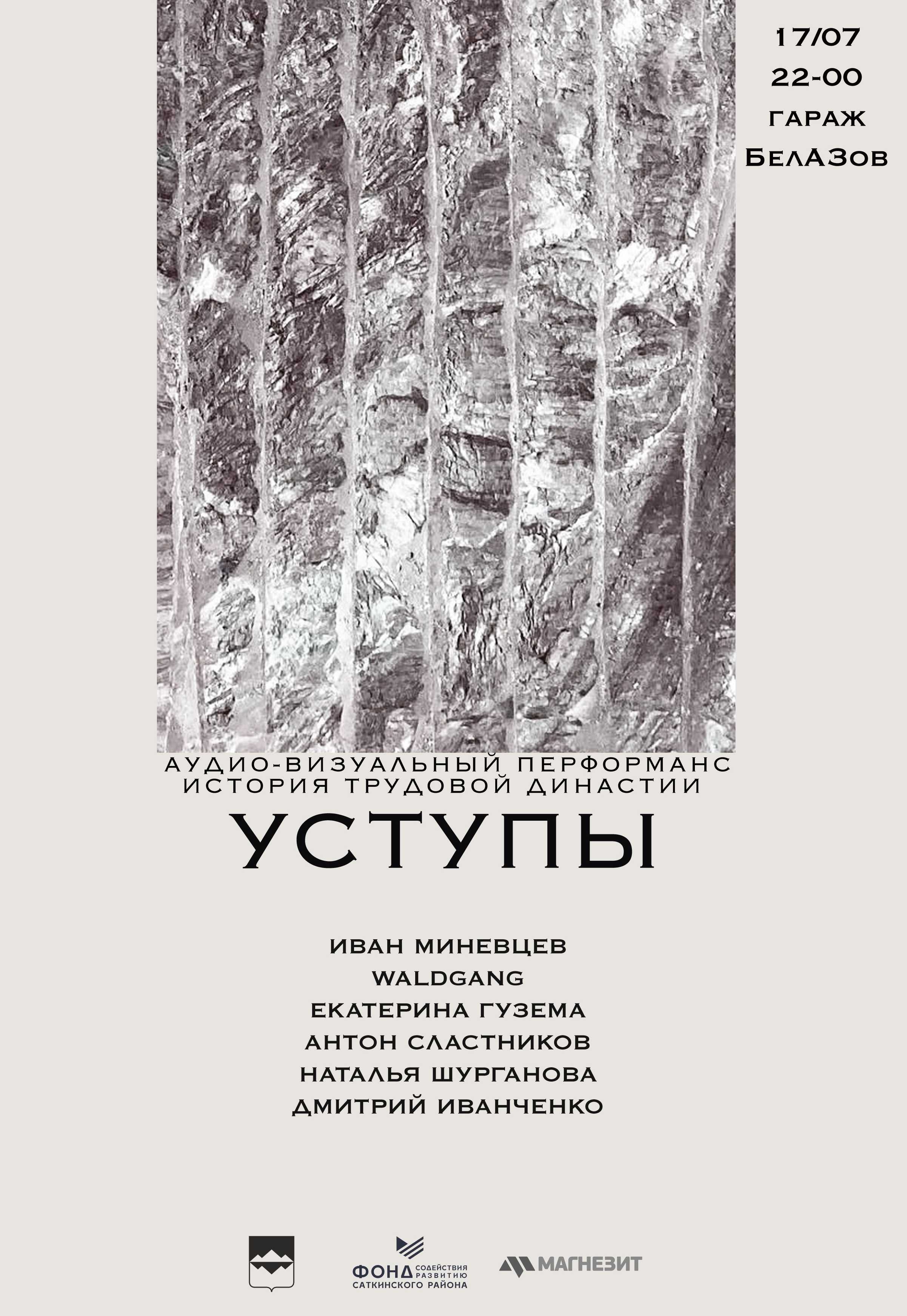 17 июля состоится премьера аудиовизуального перформанса «Уступы». Это уникальный проект, созданный театром горожан в формате site specific* в сотворчестве с профессионалами в сфере современного театрального искусства. О необычности проекта говорит не только выбранный жанр, но и сама идея спектакля, её воплощение, а также место будущего показа. Подробнее об этом – в интервью режиссёра и продюсера проекта Ивана Миневцева.