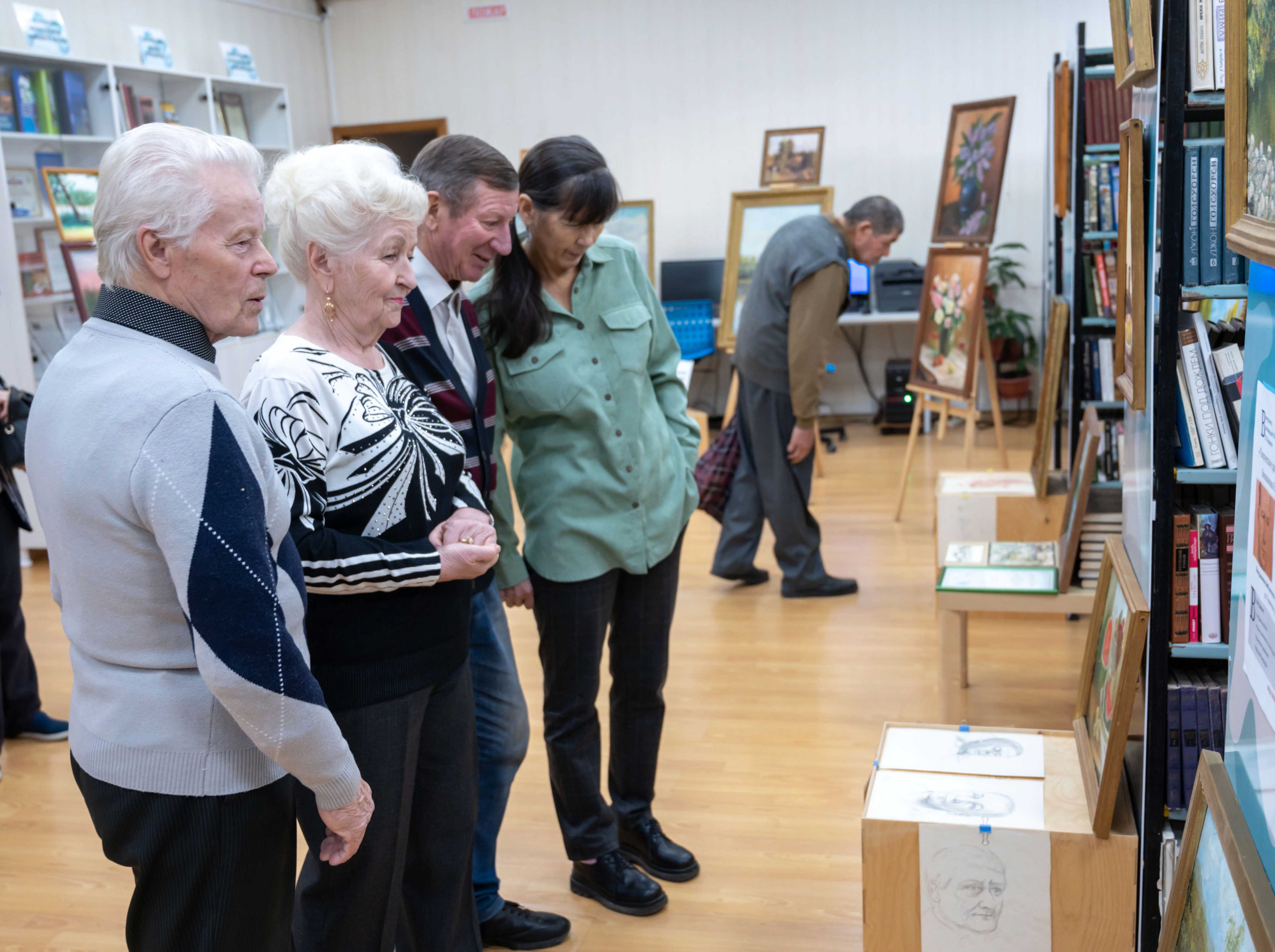На встречу, которая состоялась в центральной библиотеке Сатки, пришли родные и друзья Вениамина Петровича, а также коллеги и ученики, среди которых много магнезитовцев. А красочным предисловием к официальной части вечера стала выставка работ художника, выполненных в разное время и в разной технике: от карандашных набросков до портретов и пейзажей. Кстати, была здесь представлена и дипломная работа Вениамина Петровича – большой, немного потемневший, но всё же сохранивший свою сочность и притягательность натюрморт. Картине уже 70 лет.