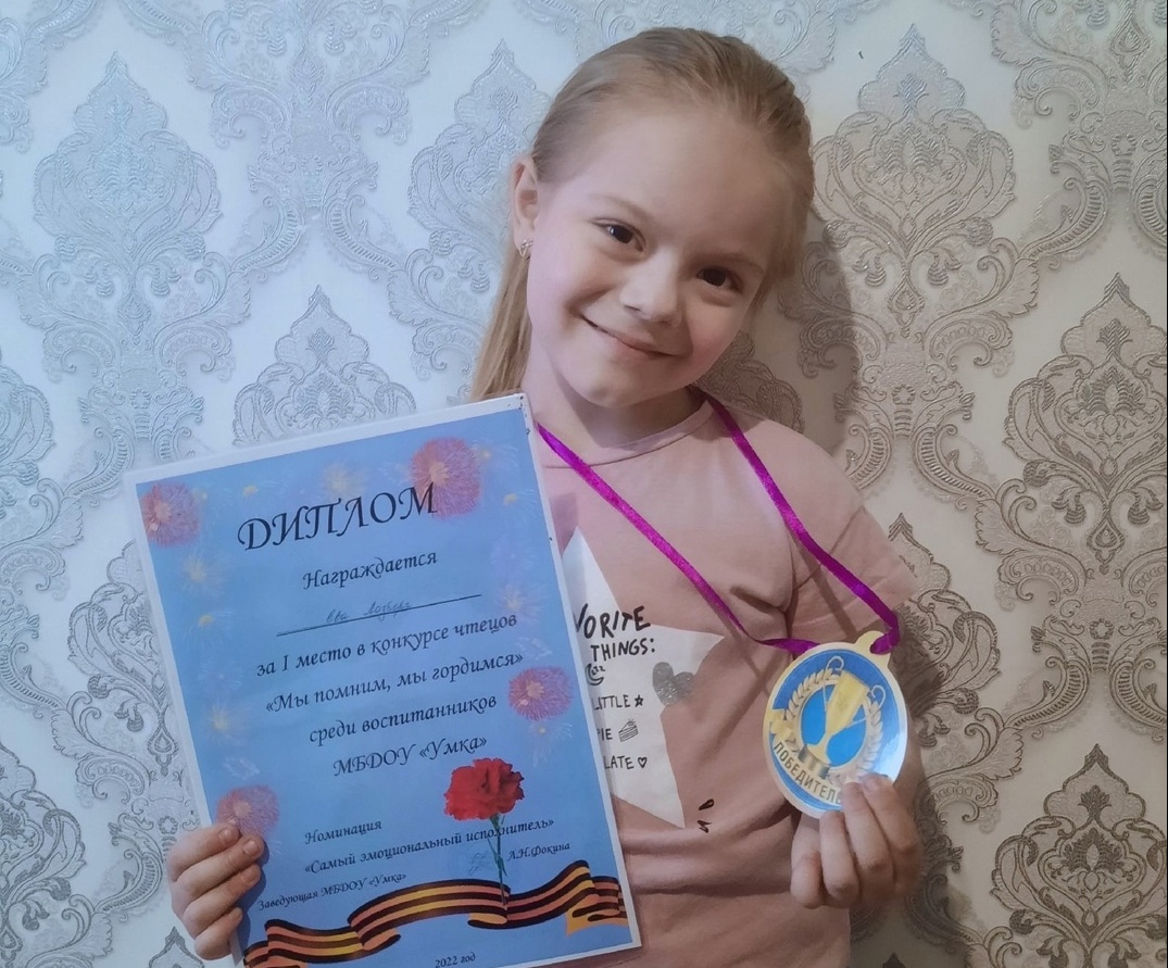 Старшая дочь Даниловых Ева учится в музыкальной школе, ей 7 лет. С детского сада она не пропускает ни одного творческого конкурса, выступает на сцене, занимая при этом исключительно призовые места, собирая в свою копилку грамоты и медали. Например, 15 февраля она ездила в Красноярск на международный конкурс «Сибирь зажигает звёзды» и привезла две медали и звание лауреата второй степени. Совсем скоро Ева станет обладательницей золотого знака отличия ГТО, а 1 мая в её копилке достижений появилось ещё одно – дочка стала серебряным призёром районного конкурса чтецов «Живое слово».