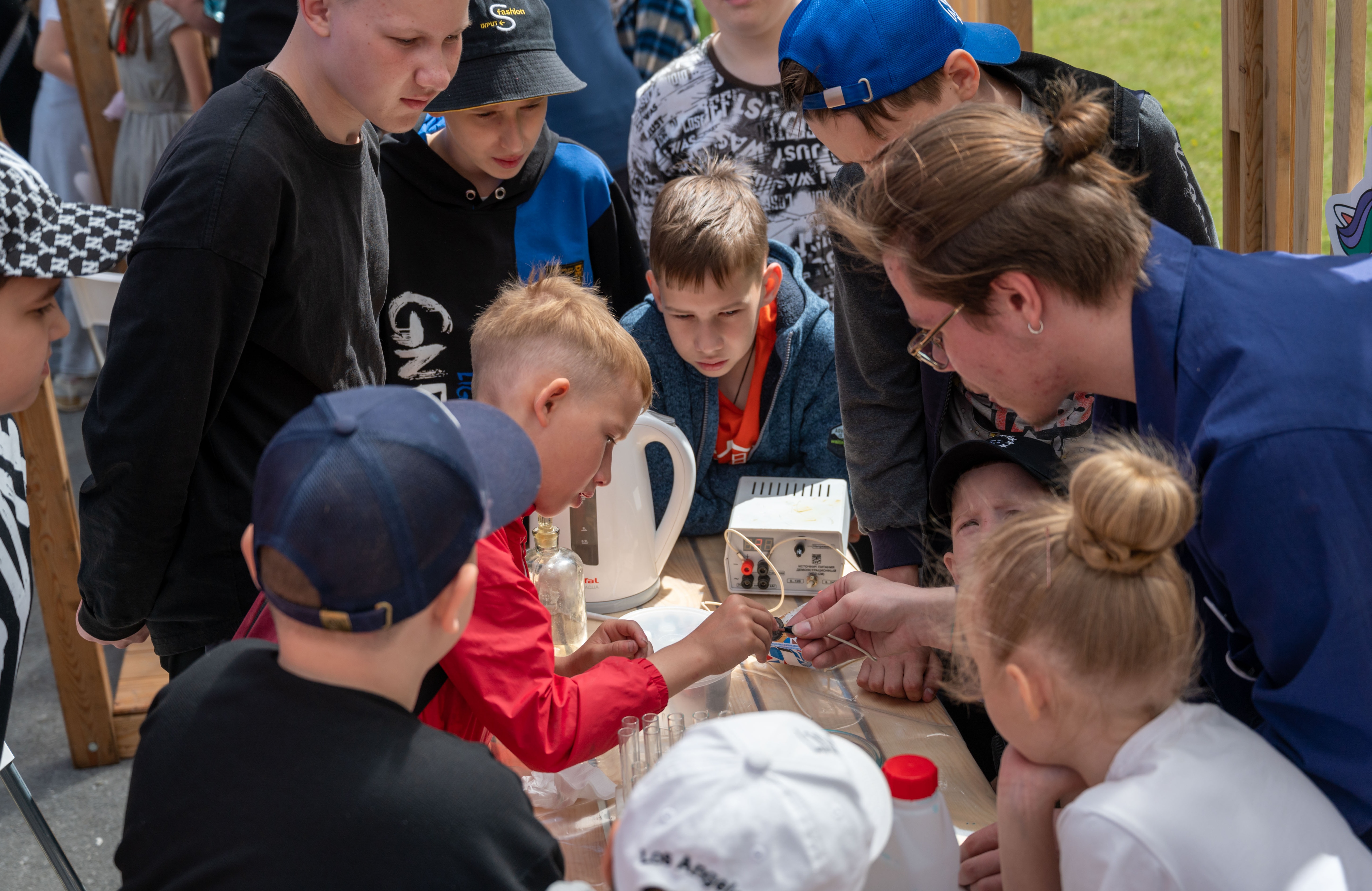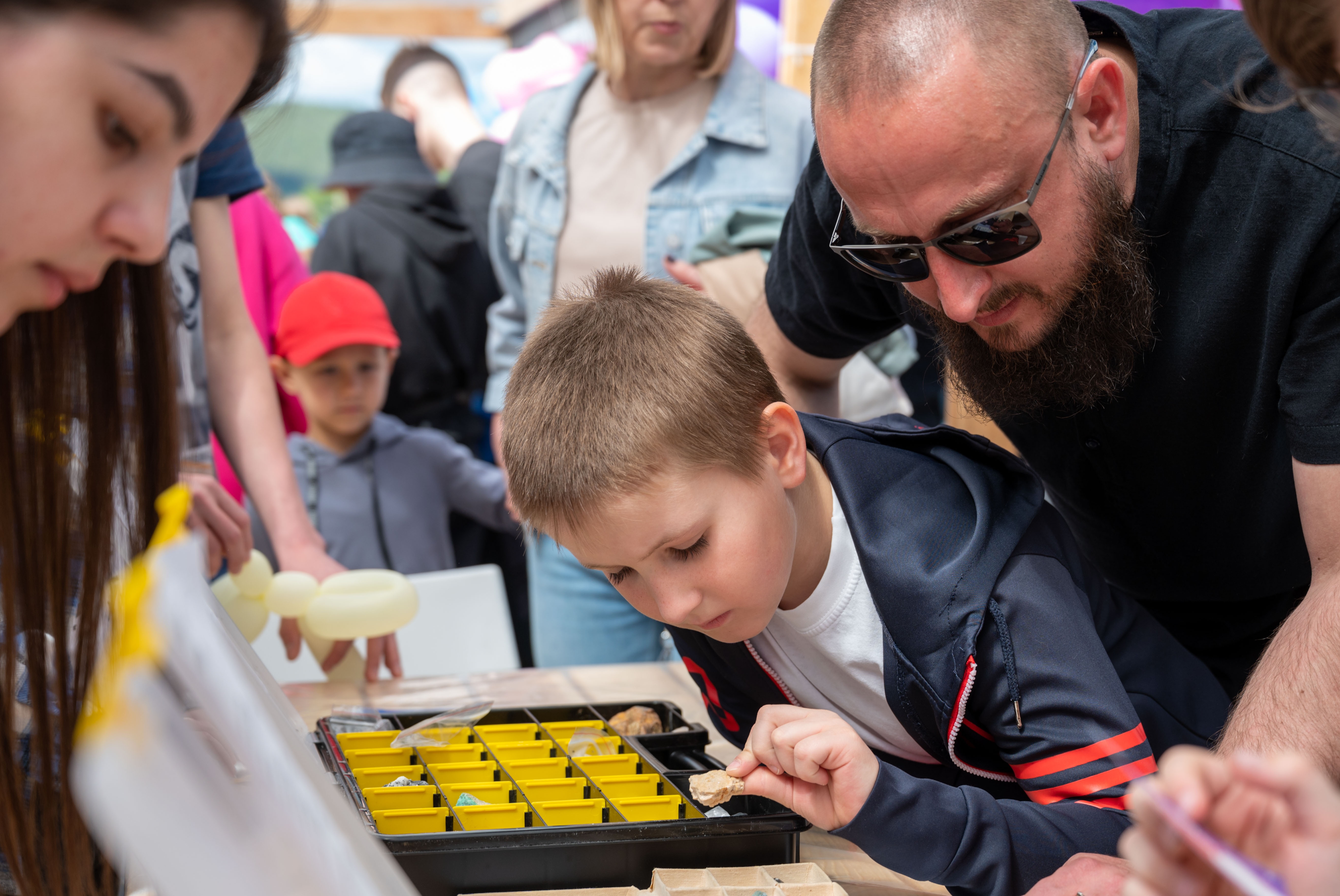 Самые любознательные участвовали в мастер-классах команды проекта популяризации науки Science Slam Kids из Екатеринбурга. Молодые учёные Уральских вузов ознакомили своих «учеников» со способами защиты металлических поверхностей от коррозии, показали, как меняется активность металлов от их размеров, продемонстрировали способы нанесения металлических покрытий. Также ребята наблюдали за зрелищными научными экспериментами – «Пенный вулкан», «Джин из колбы», «Химический миномет», вызывали «Грозу в пробирке» и даже получали «Искусственную кровь», а за всем этим стоят простые химические реакции обычных веществ. На другой станции дети знакомились с удивительным миром минералов и горных пород, учились определять их свойства, познали роль камня в истории цивилизации от древних времен до настоящего времени. На площадке «Ботаника» юннаты учились составлять эталонный гербарий и гербарные листы, узнали, чем отличаются гербарные образцы прошлого и настоящего. Юным вулканологам ученые объяснили природу и свойства вулкана, показали, как изготовить его макет из подручных материалов (пластиковых стаканчиков, бумажных салфеток, фольги, соды, краски и уксуса). Прикоснулись ребята и к ювелирному искусству – мастерили настоящую брошь из ультрафиолетовой смолы в виде ящерицы. Как известно, на Урале ящерица олицетворяет дух горы, является символом мудрости, хранительницей подземных богатств.