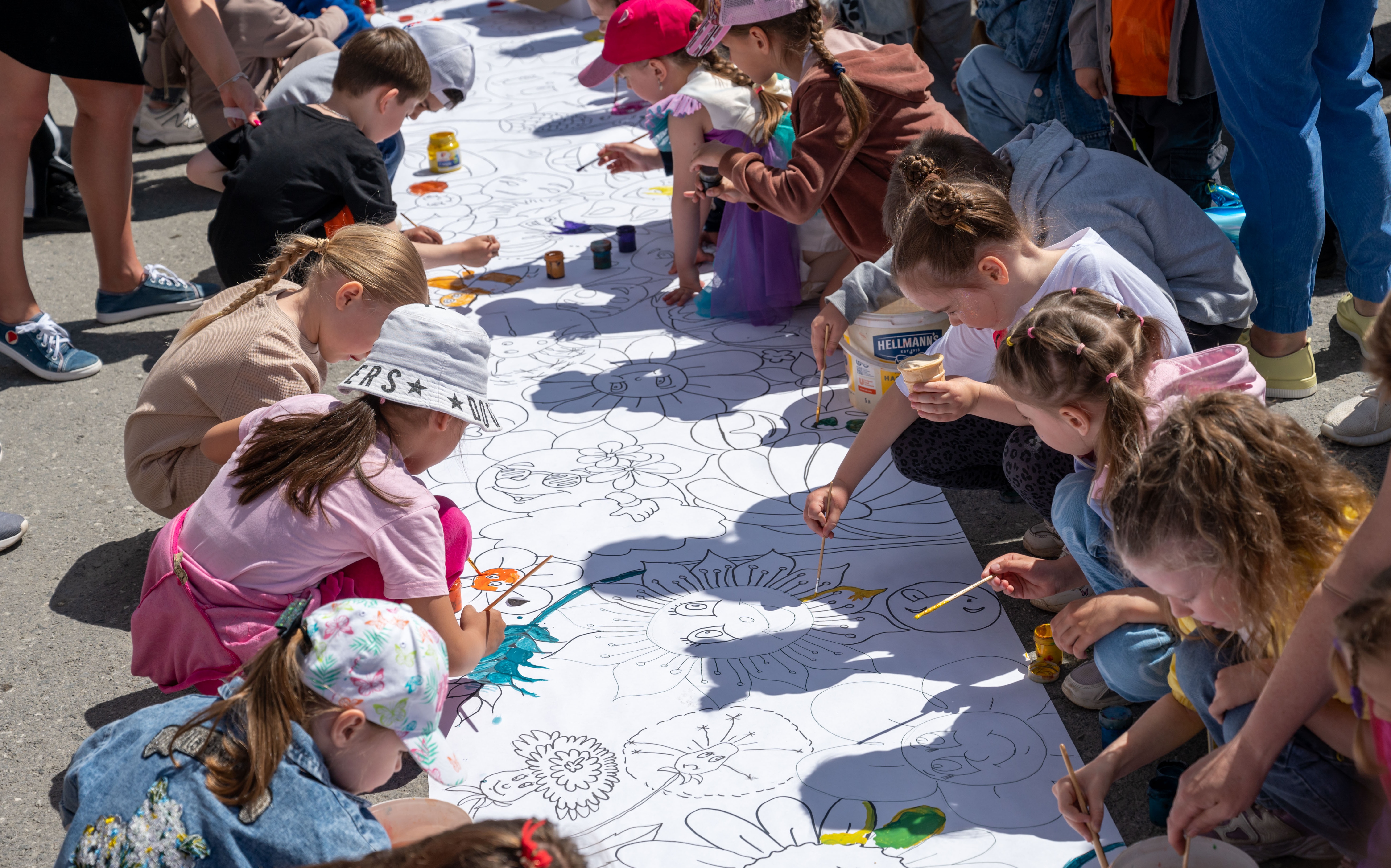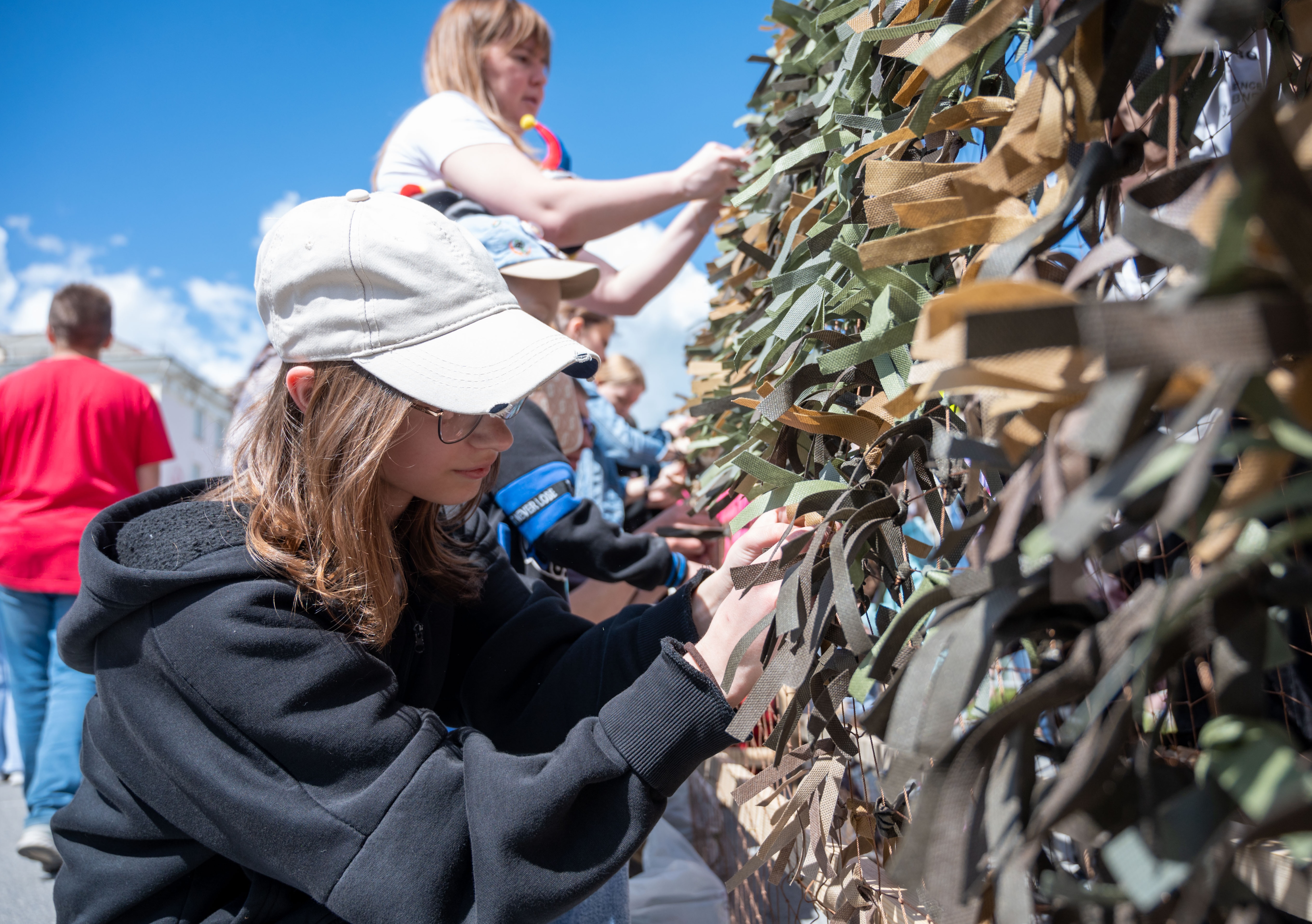 В этот день на площади дворца культуры работали творческие и игровые площадки, мастер-классы. К примеру, активисты Совета молодых рабочих и специалистов Группы Магнезит вместе с самыми маленькими гостями праздника делали сувенир – котёнка – из картонных заготовок и пластиковых крышечек. Студенты медицинского колледжа с ребятами постарше плели маскировочные сети для участников СВО и собирали комплекты для личной гигиены в полевых условиях – «сухой душ», обучали их методам оказания первой помощи.