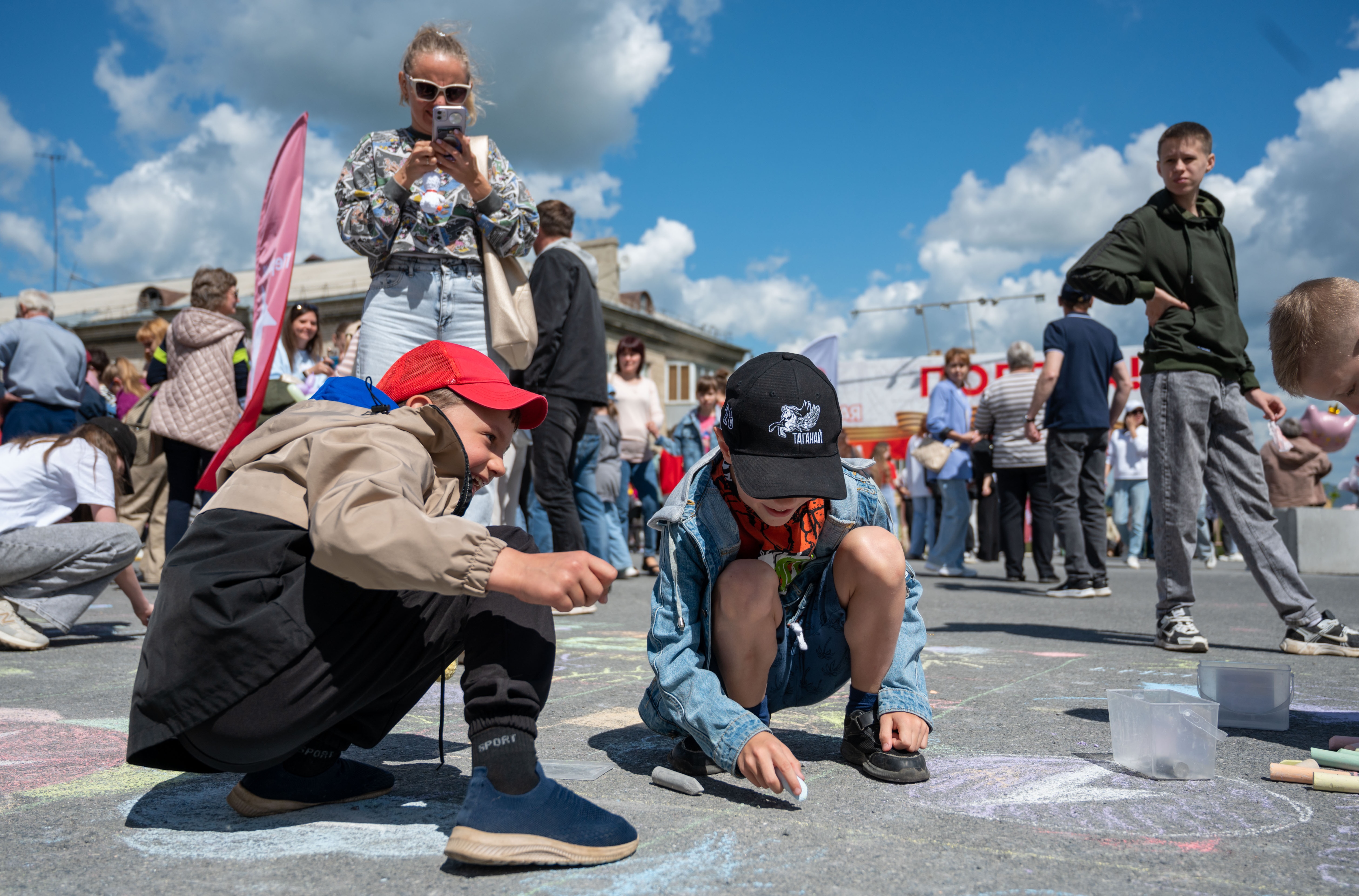 Создать отличное летнее настроение гостям помогали участники творческих коллективов ДК «Магнезит». А пока шёл концерт, детвора мелом рисовала на площади сюжеты о лете, которые составили в итоге праздничную открытку.