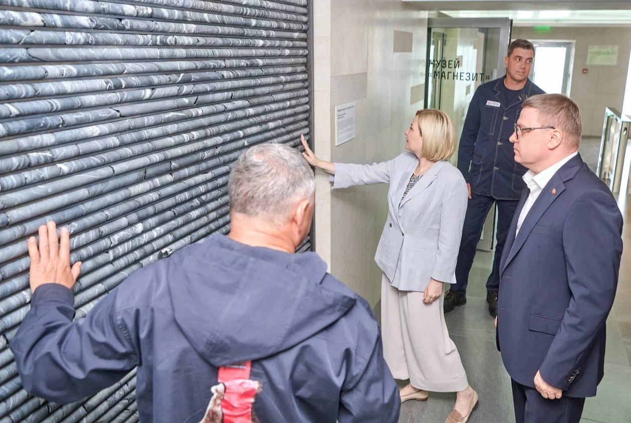 Вчера, 24 июля, вместе с губернатором региона Алексеем Текслером Ольга Любимова работала в Сатке, где посетила корпоративный музей и производственную площадку Группы Магнезит, Сад камней, общественное креативное пространство «Арт-Сатка», а также дворец культуры «Магнезит».